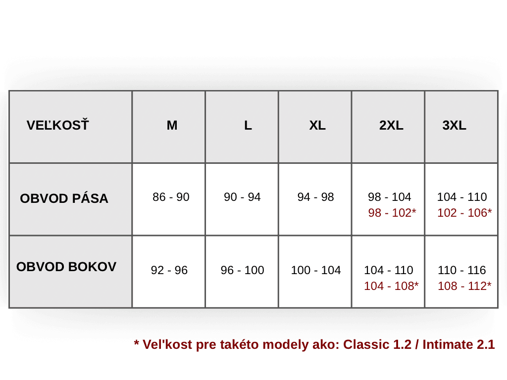 5. Ak ti podľa mier napríklad vychádza XL aj 2XL (obvod pása – XL a obvod bokov – 2XL), vždy si vezmi väčšiu veľkosť.